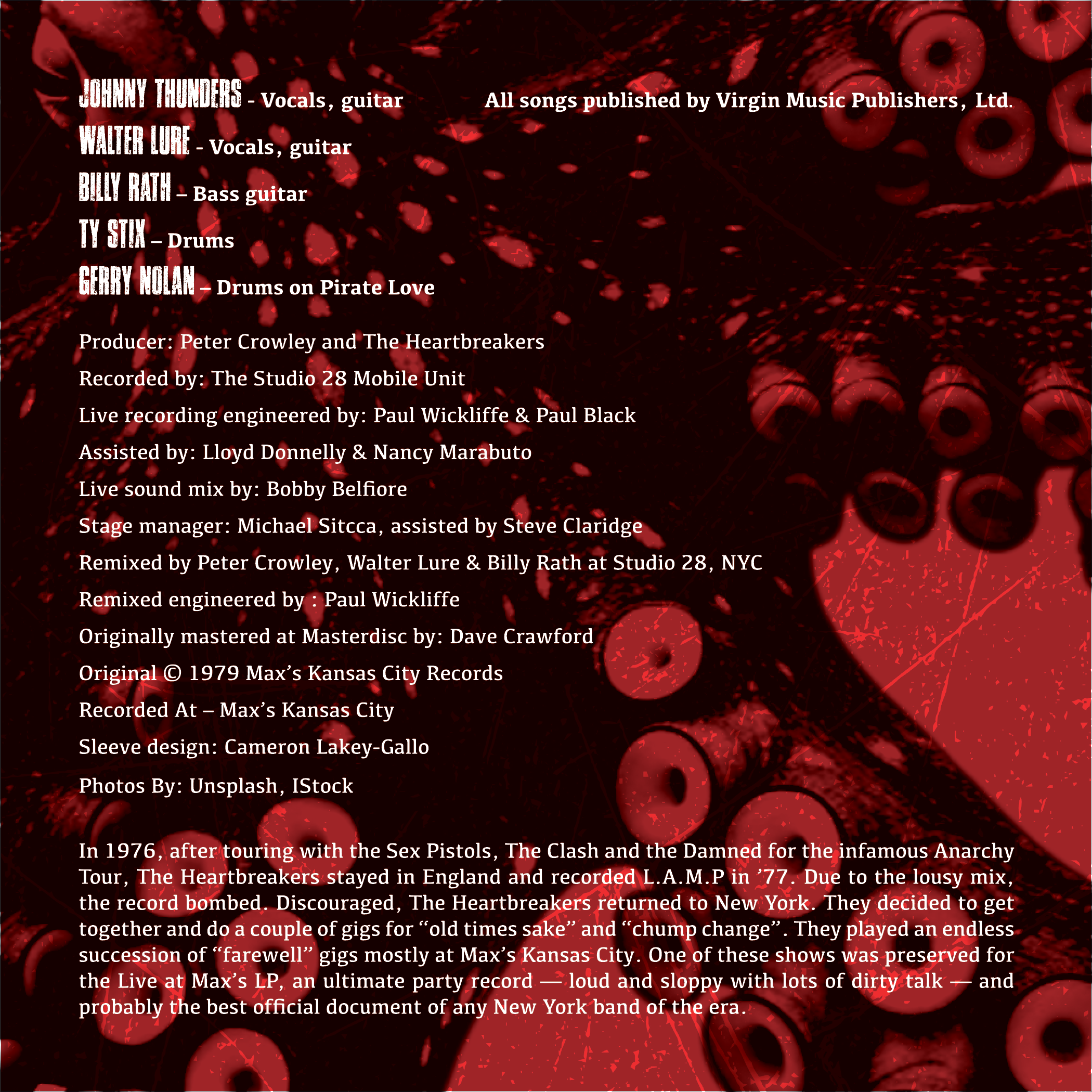 Practicing layout with different type and typography, I picked a vinyl of Johnny Thunders and the Heartbreakers to create a custom vinyl sleeve with matching circles. Front Back